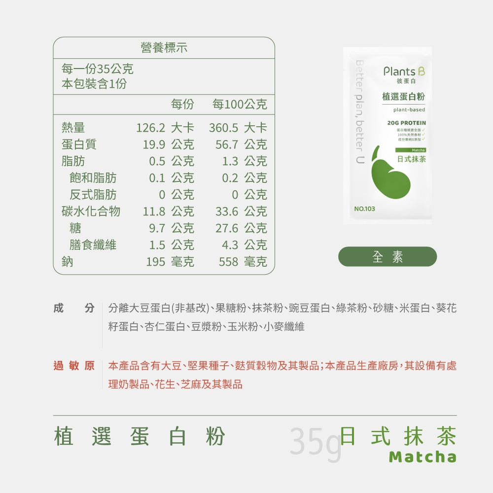 彼蛋白 PlantsB 植選蛋白粉 30入禮盒 6種口味|植物蛋白 高蛋白 素食蛋白|果果能量官方旗艦店