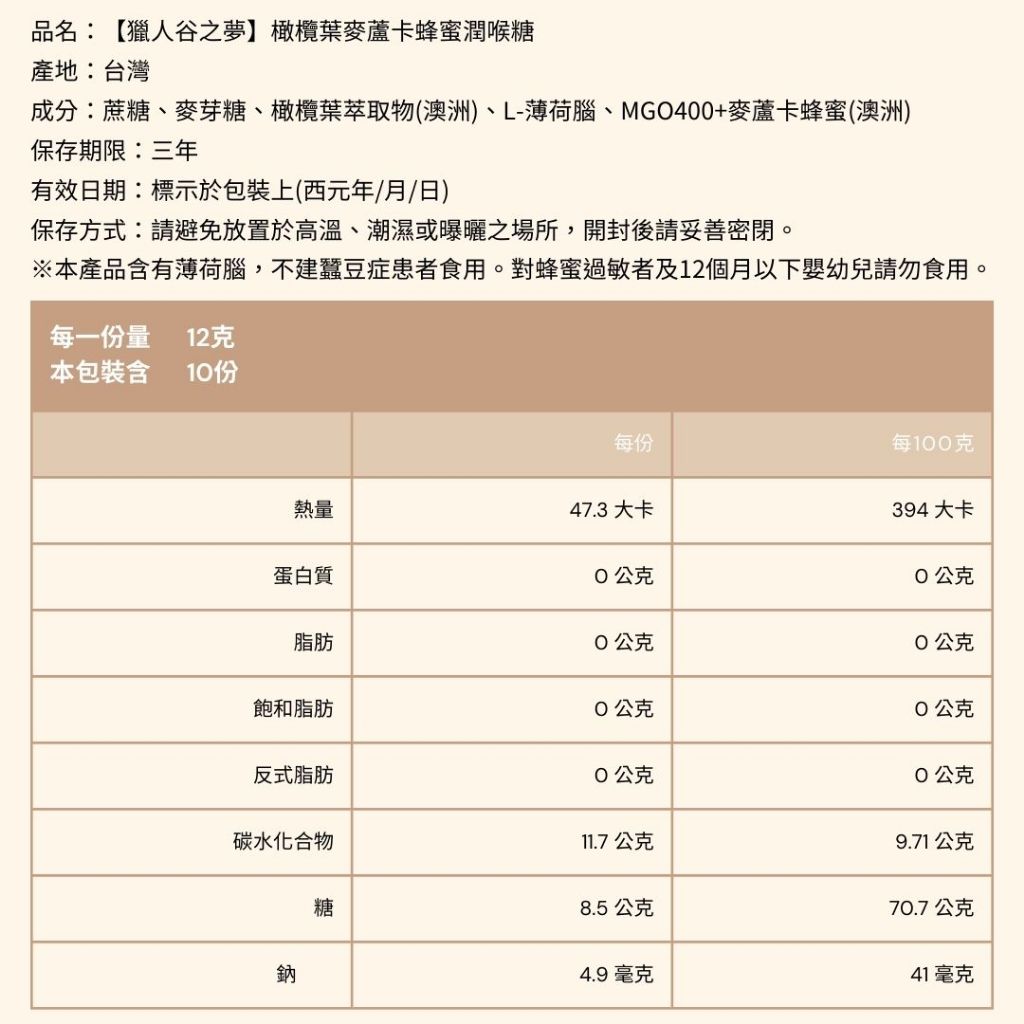 橄欖葉麥蘆卡蜂蜜MGO400+潤喉糖 30顆/包20入/包|30入/包Sweets & CandyHealthy Care品牌旗艦店