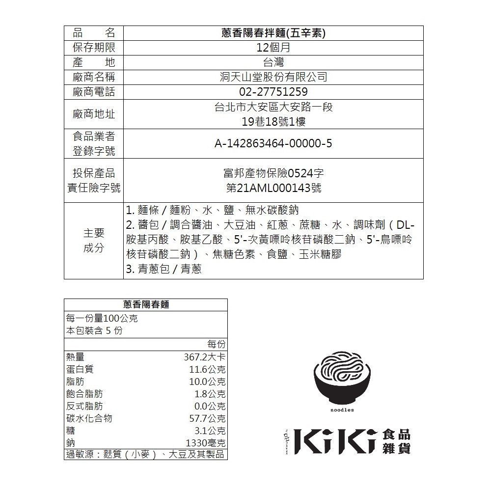 【KiKi】KiKi蔥香陽春拌麵(五辛素) 5包/袋【KiKi】KiKi蔥香陽春拌麵(五辛素) 5包/袋NoodlesKiKi食品雜貨旗艦店