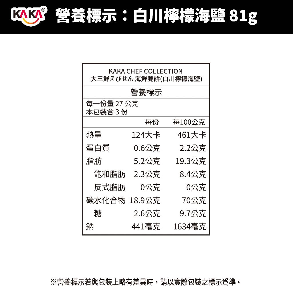 KAKA CHEF COLLECTION 大三鮮えびせん 海鮮脆餅 81g白川檸檬海鹽|漁場經典原味Dried SnacksKAKA海洋燒官方旗艦店