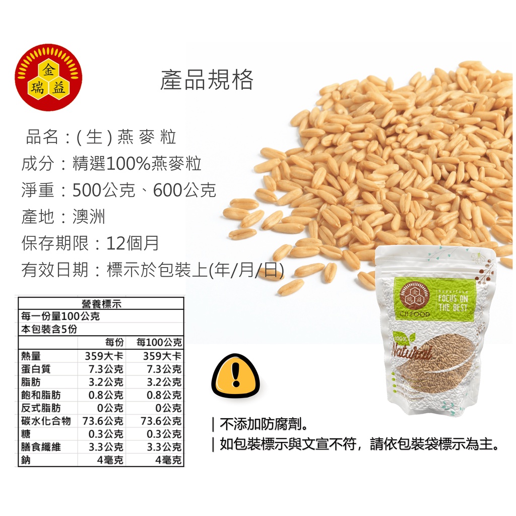 【金潤益】澳洲 燕麥粒 600g 夾鏈包|燕麥仁 Oat Groats 低卡 高纖 燕麥 金瑞益燕麥粒 600g|夾鏈袋Cereal, Granola & OatsKREFOOD金潤益食品官方旗艦店