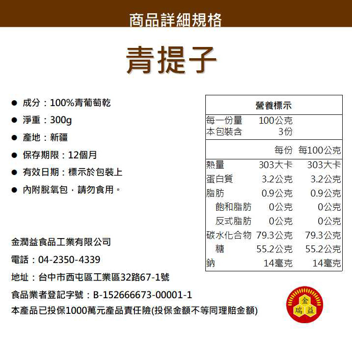 【金瑞益】新疆 青提子 300g 真空夾鏈袋|帶皮 青葡萄乾 綠葡萄乾 葡萄乾 乾貨|金潤益 天然 果乾青提子 300g|2026/01|紅葡萄乾 300g|2026/03Dried SnacksKREFOOD金潤益食品官方旗艦店