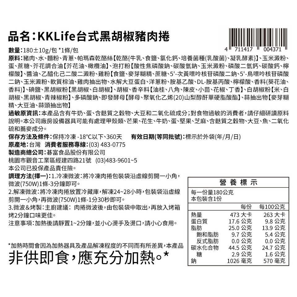 【KKLife】台式黑胡椒豬肉捲 (180g/包)1條Processed Meat & SeafoodKKLife|紅龍官方直營店