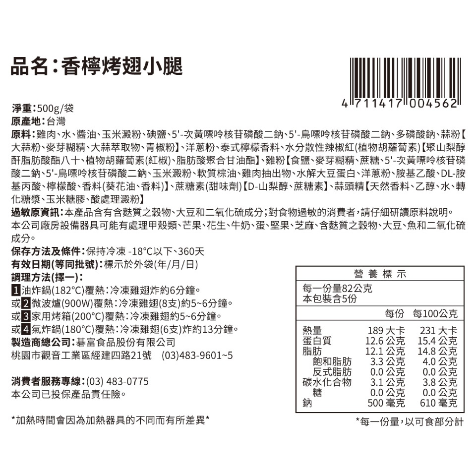 【贈品】【紅龍】香檸烤翅小腿 (500g/袋)1袋Processed Meat & SeafoodKKLife|紅龍官方直營店