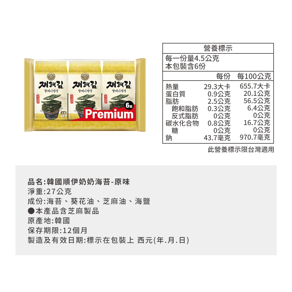 【順伊奶奶】順伊奶奶海苔-原味27g/洋蔥30g原味27g|洋蔥30gSeaweedKoreaTop韓物通