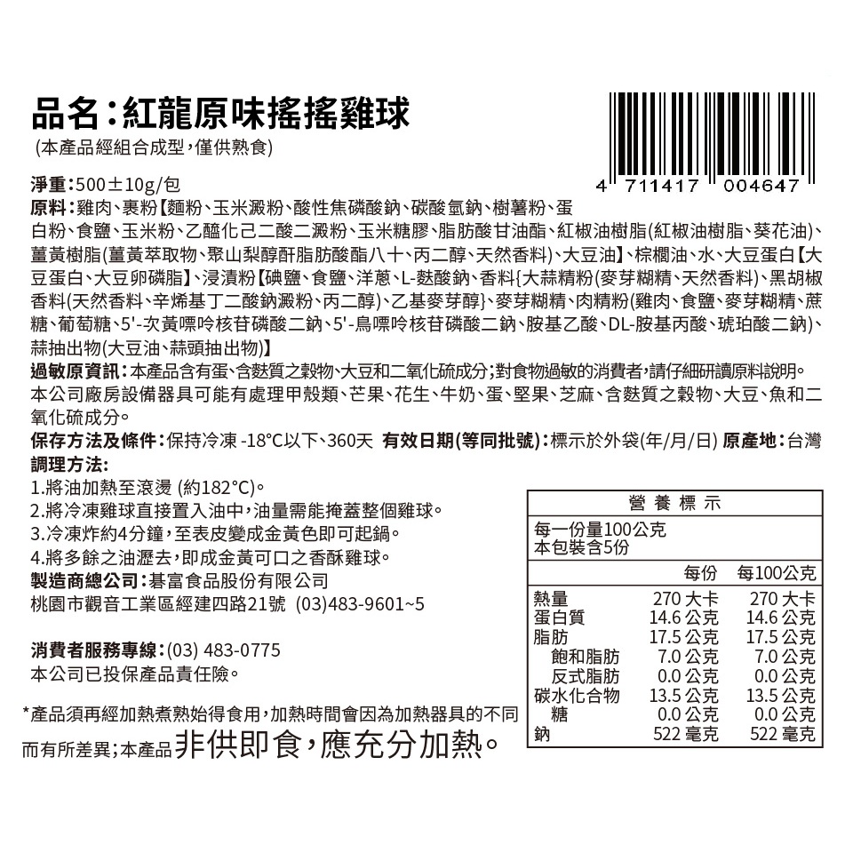 【紅龍】原味搖搖雞球(500g/包)1包Processed Meat & SeafoodKKLife|紅龍官方直營店