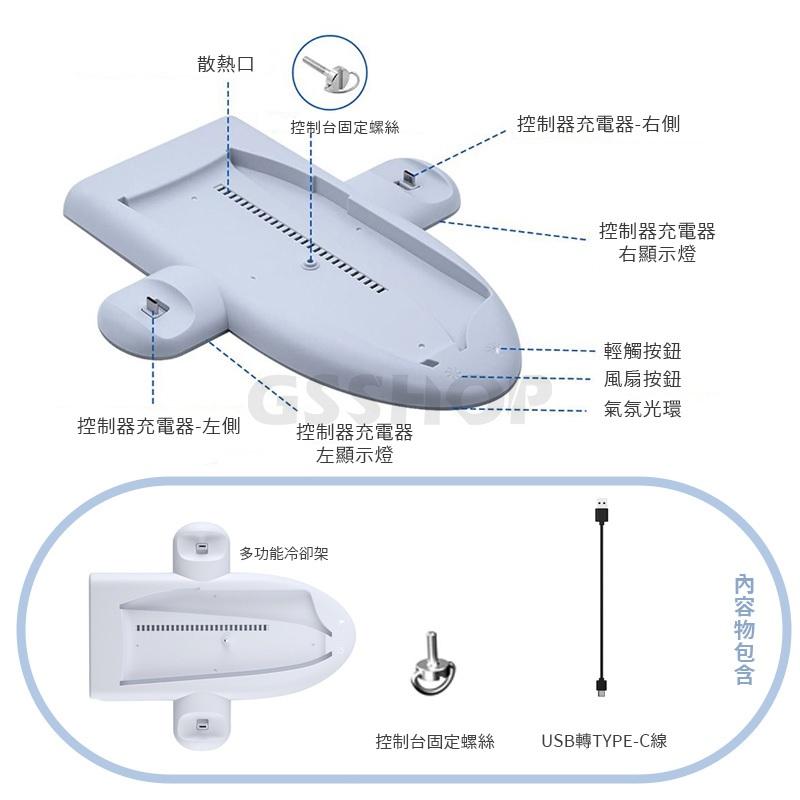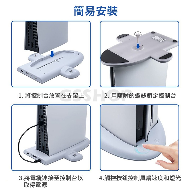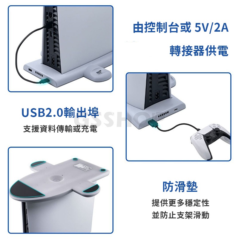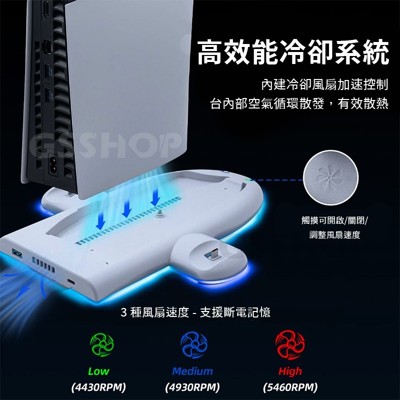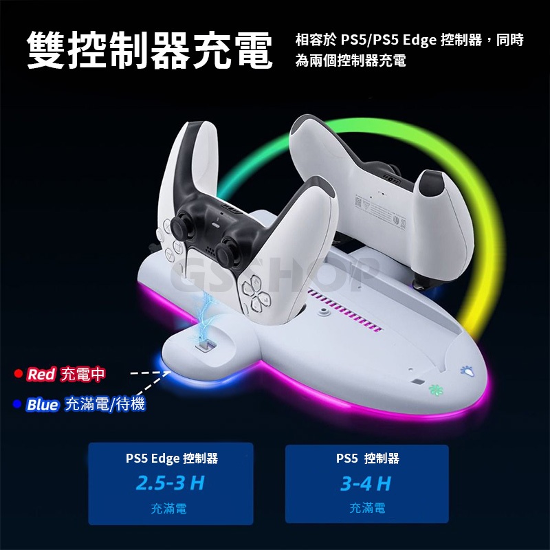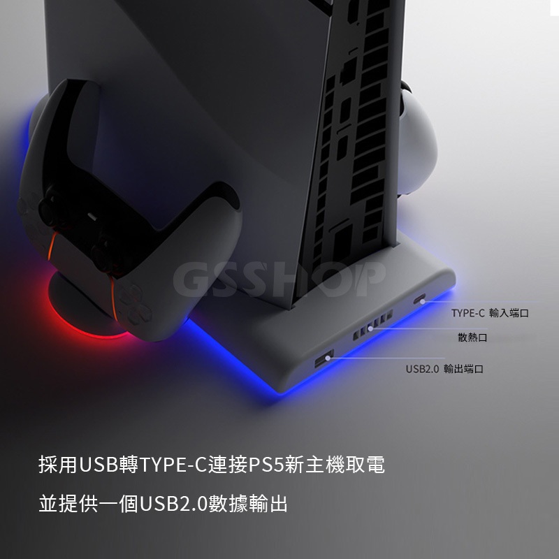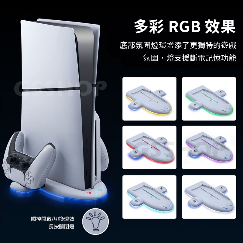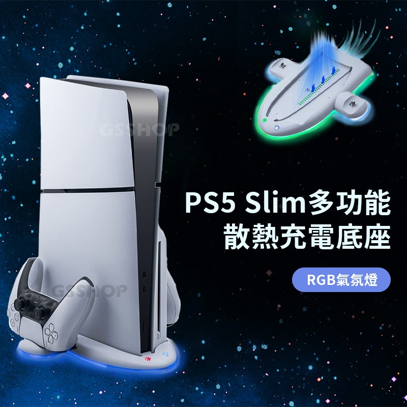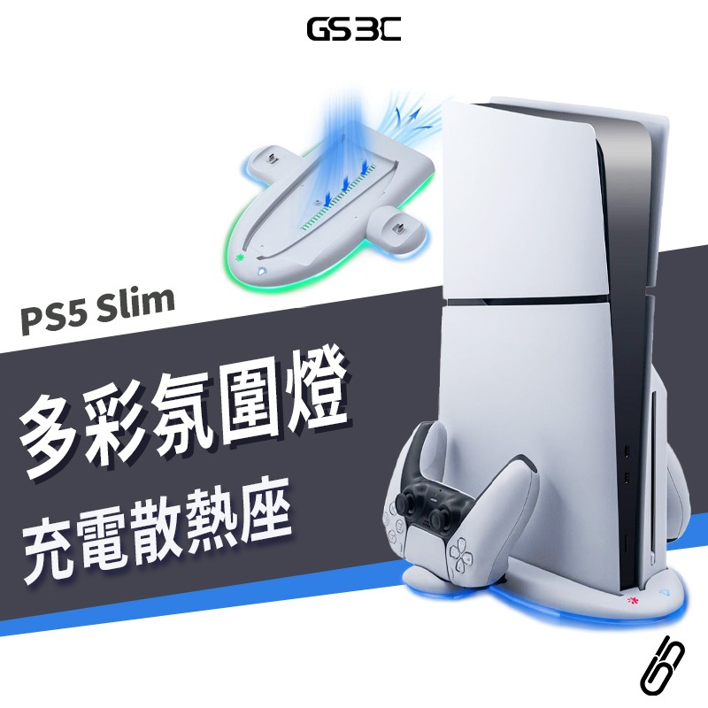 PS5 Slim 主機 支架 立架 散熱底座+控制器 手把 搖桿 充電座 充電器 RBG 燈光效果 收納座 週邊 配件白色GS 3C 手機平板配件選品店