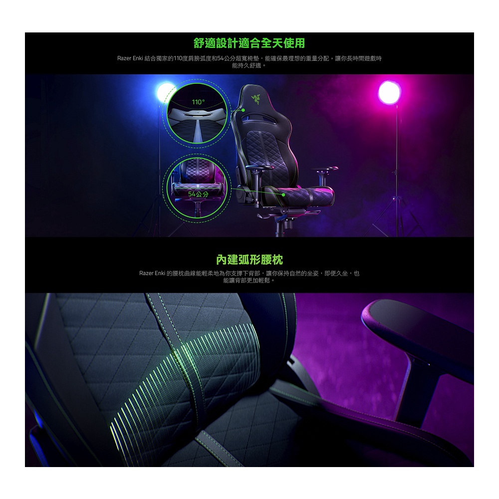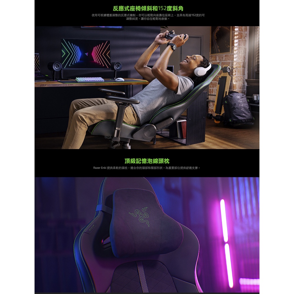 Razer 雷蛇 Enki人體工學設計電競椅 綠黑色 RZ38-03720100-R3U1【GAME休閒館】Razer 雷蛇 Enki人體工學設計電競椅 綠黑色 RZ38-03720100-R3U1【GAME休閒館】GAME休閒館
