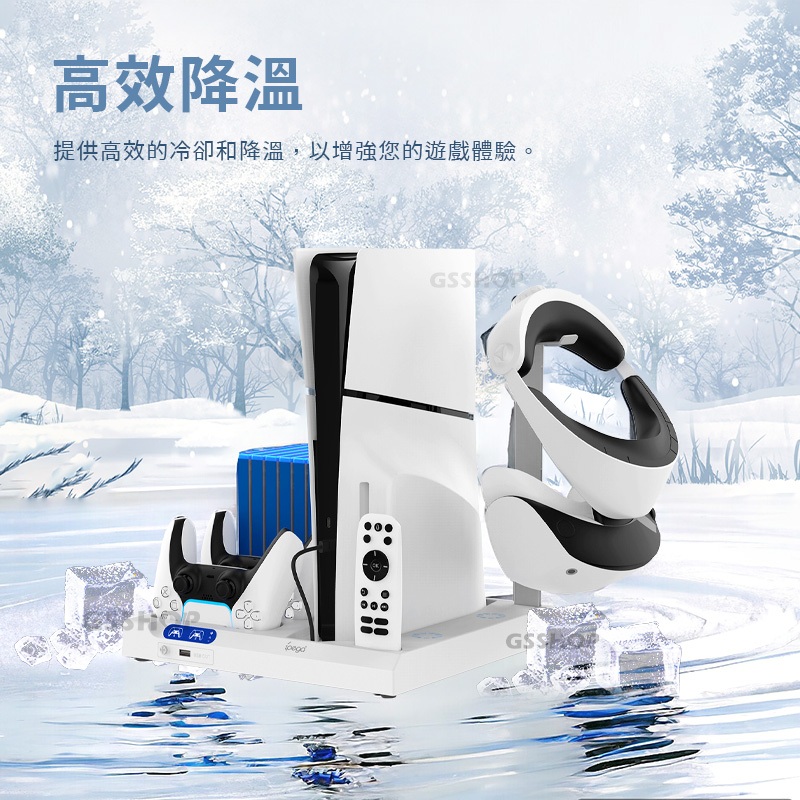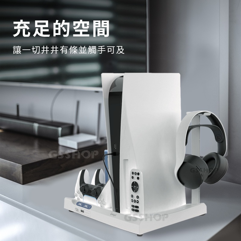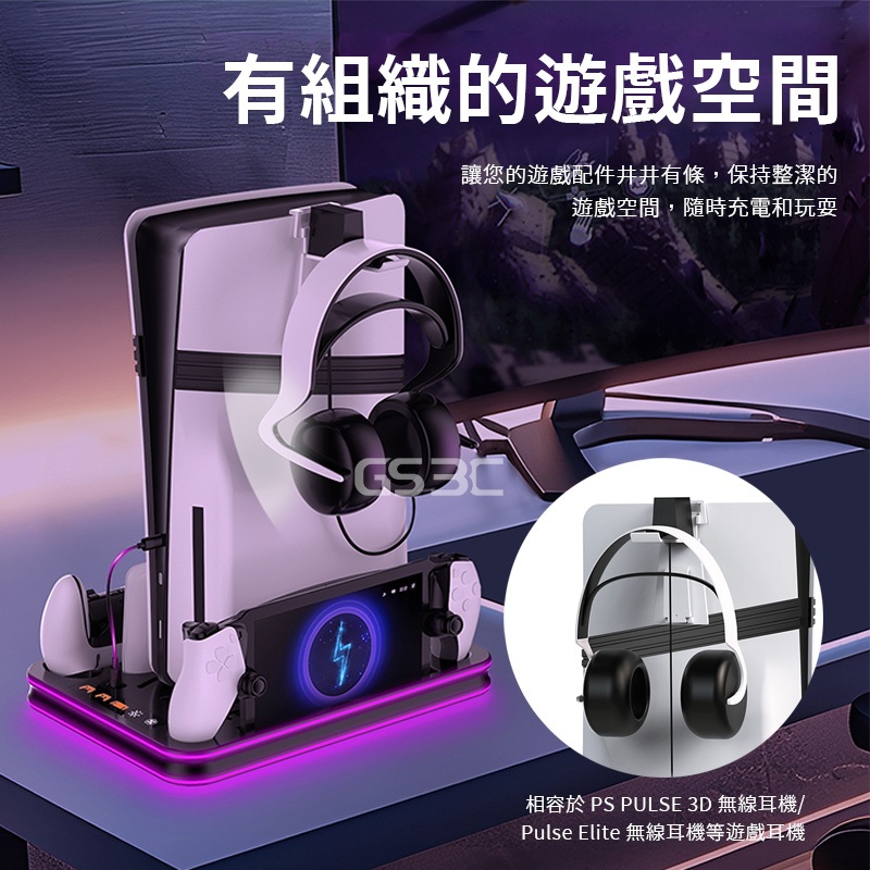 PS5 Pro/PS5 Slim 立架 站立 支架 收納底座 散熱 降溫 可充搖桿 手把 控制器 耳機掛勾 多功能收納PS5 Slim/PS5 通用|PS5/PS5 Pro/Slim 通用GS 3C 手機平板配件選品店