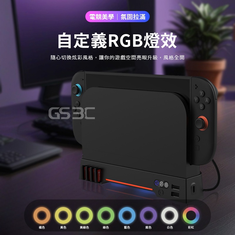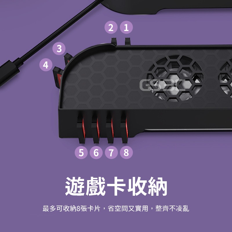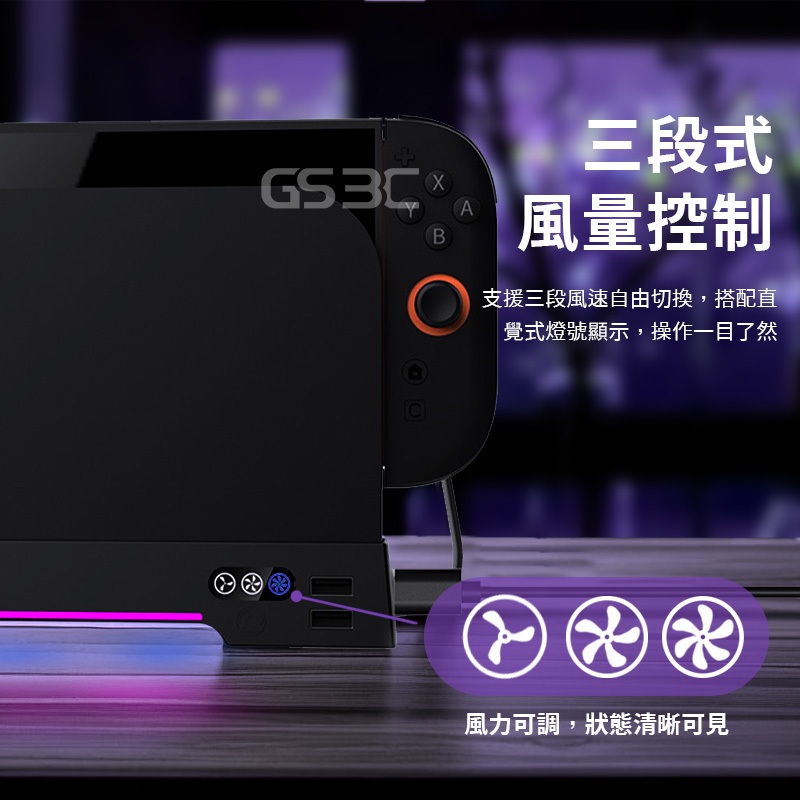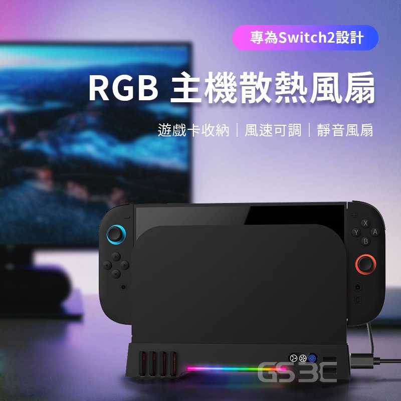 散熱風扇 NS Switch 2 Switch2代 主機 底座 冷卻 散熱 降溫 RGB 燈光 可收納遊戲卡 三段風量主機散熱風扇(黑色)GS 3C 手機平板配件選品店