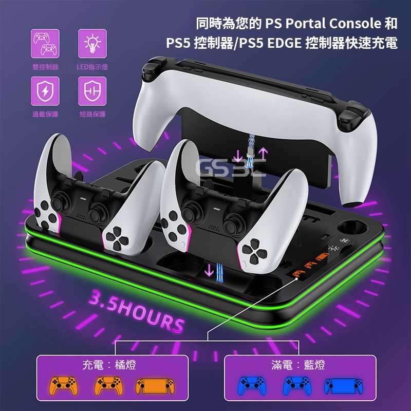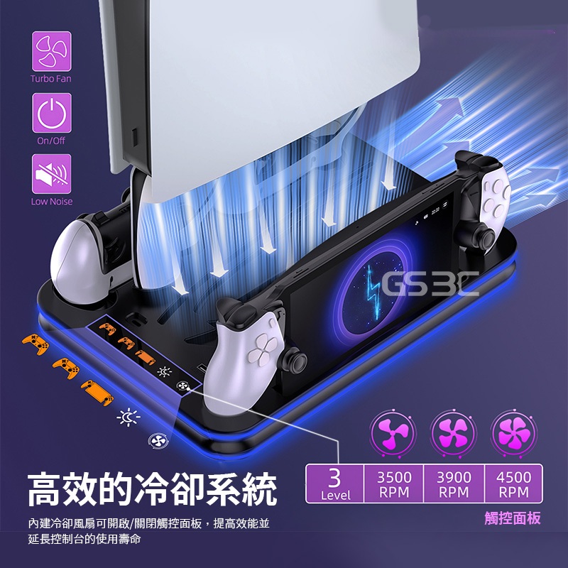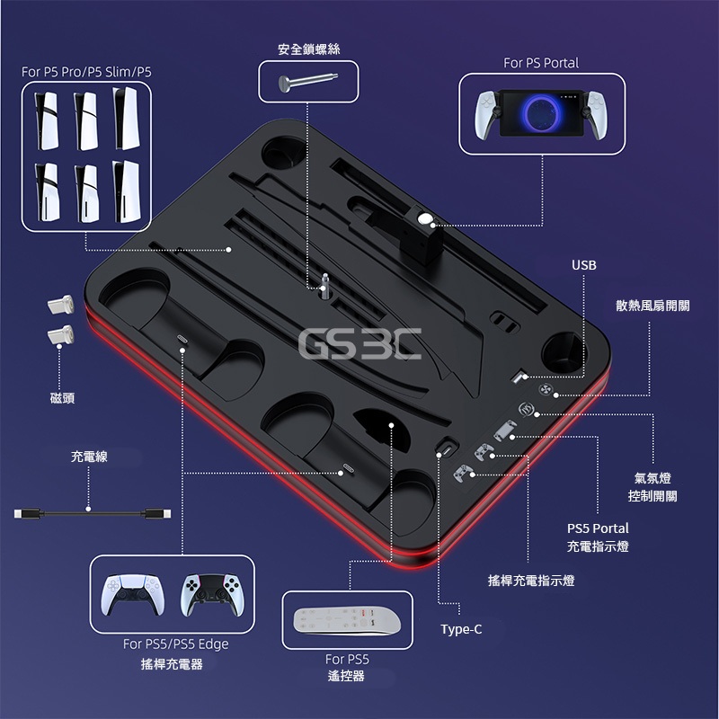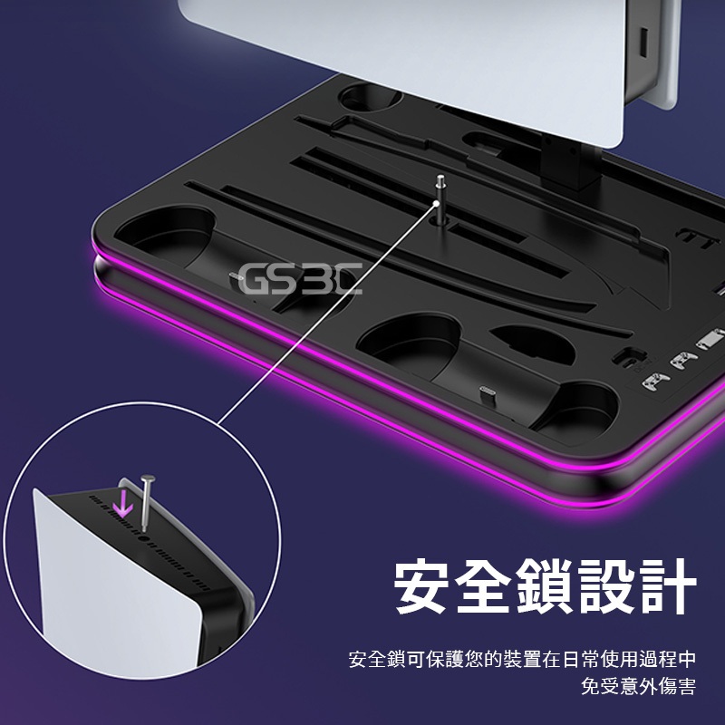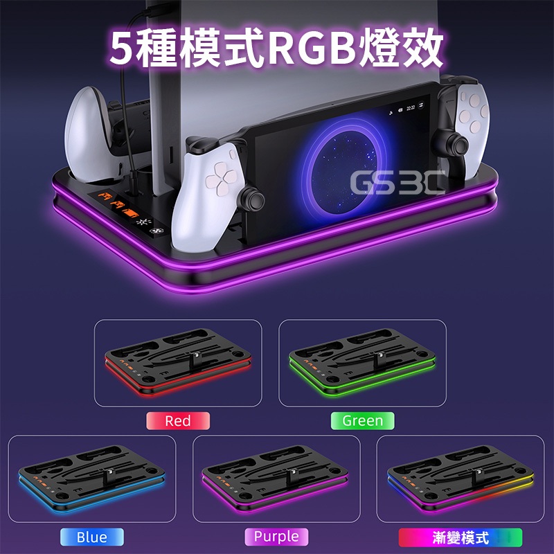 全機型 通用 PS5 Pro/Slim/Portal 散熱 底座 支架 控制器 手把 充電 RGB 燈光 收納 立架黑色GS 3C 手機平板配件選品店