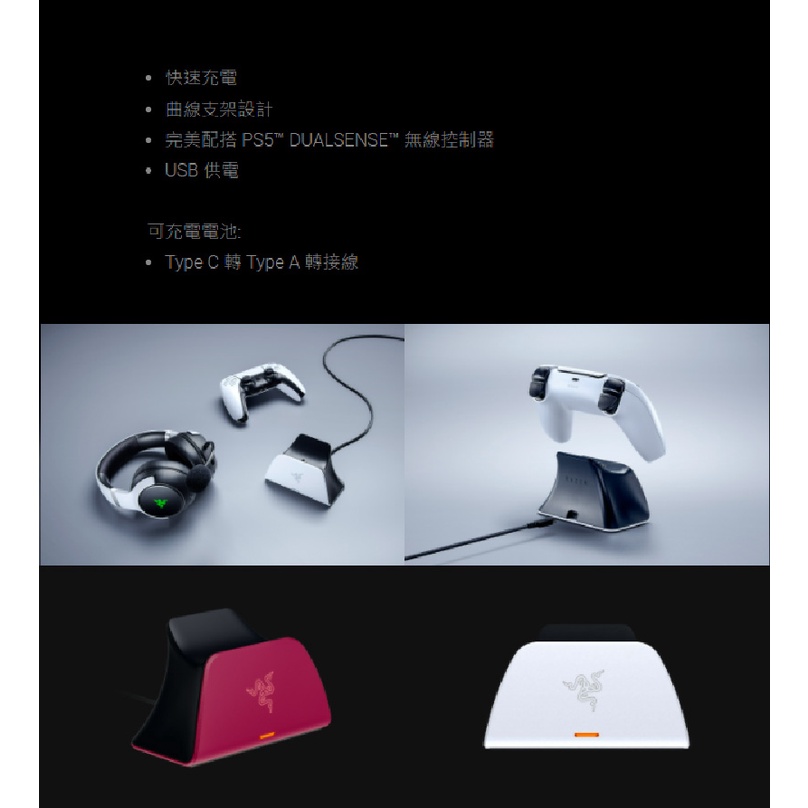 Razer 雷蛇 PS5 通用快速充電座 三色選 【現貨】【GAME休閒館】星塵紅|白|午夜黑GAME休閒館