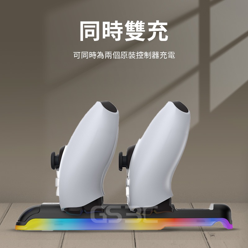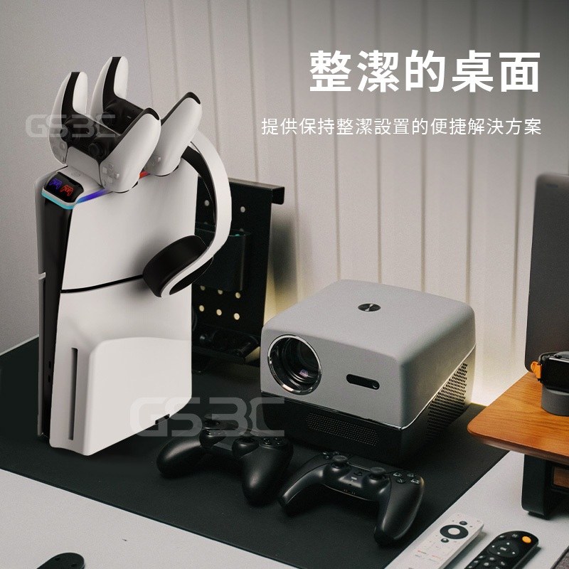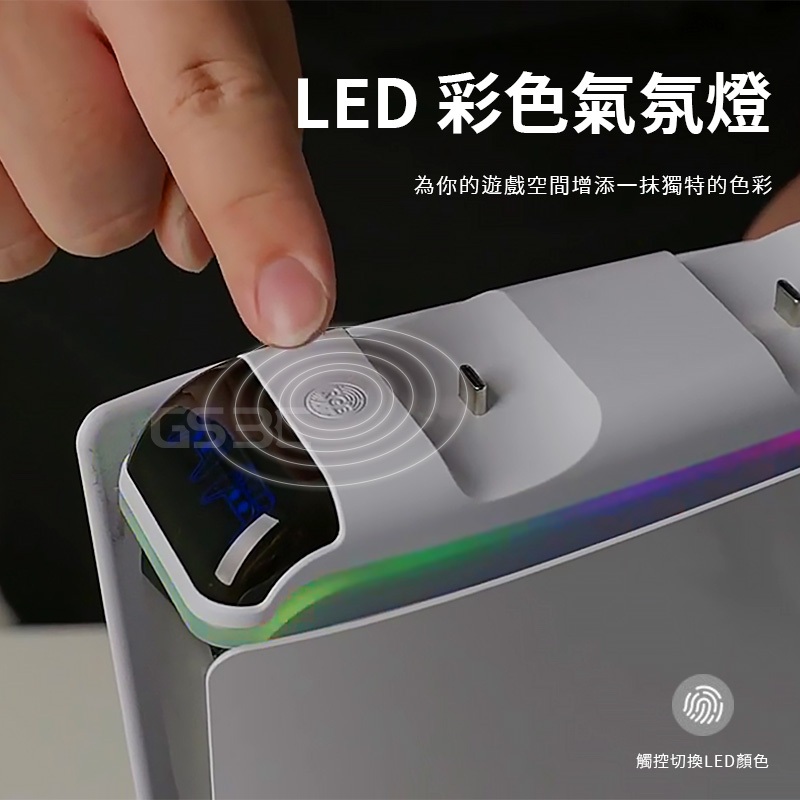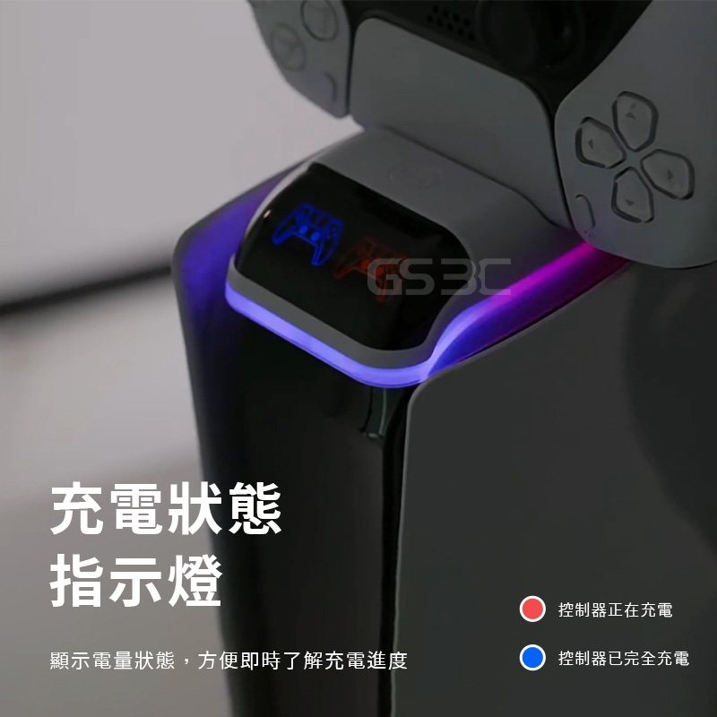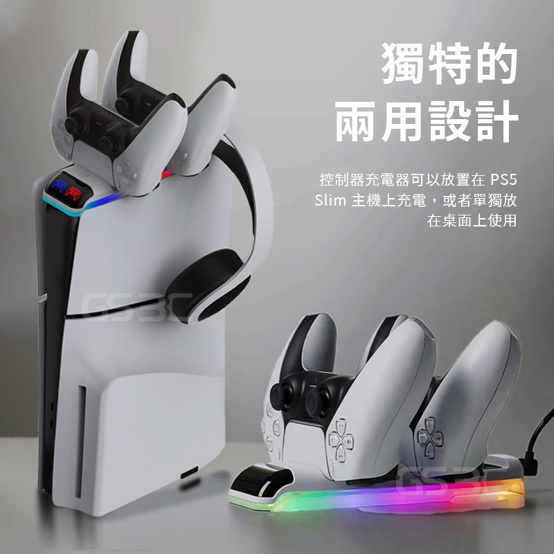 PS5 Slim 專用 手把 搖桿 控制器 充電座 底座 雙座充 主機頂部 主機上 直插式 美觀 不佔空間 彩色氣氛燈白色|黑色GS 3C 手機平板配件選品店