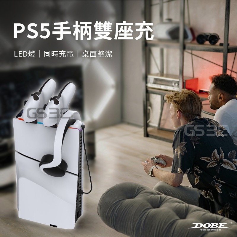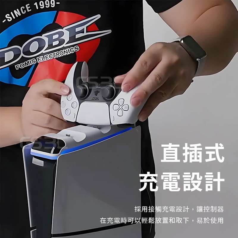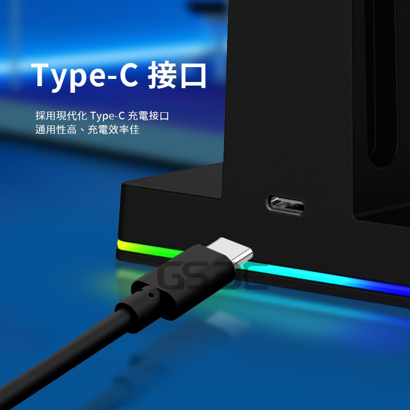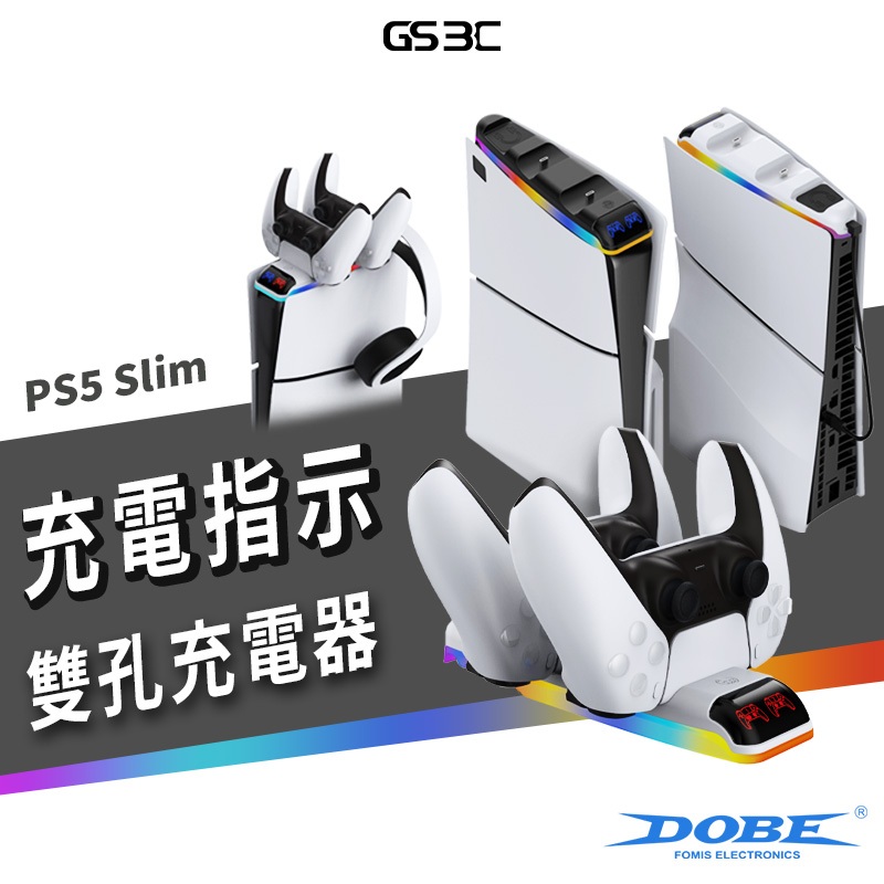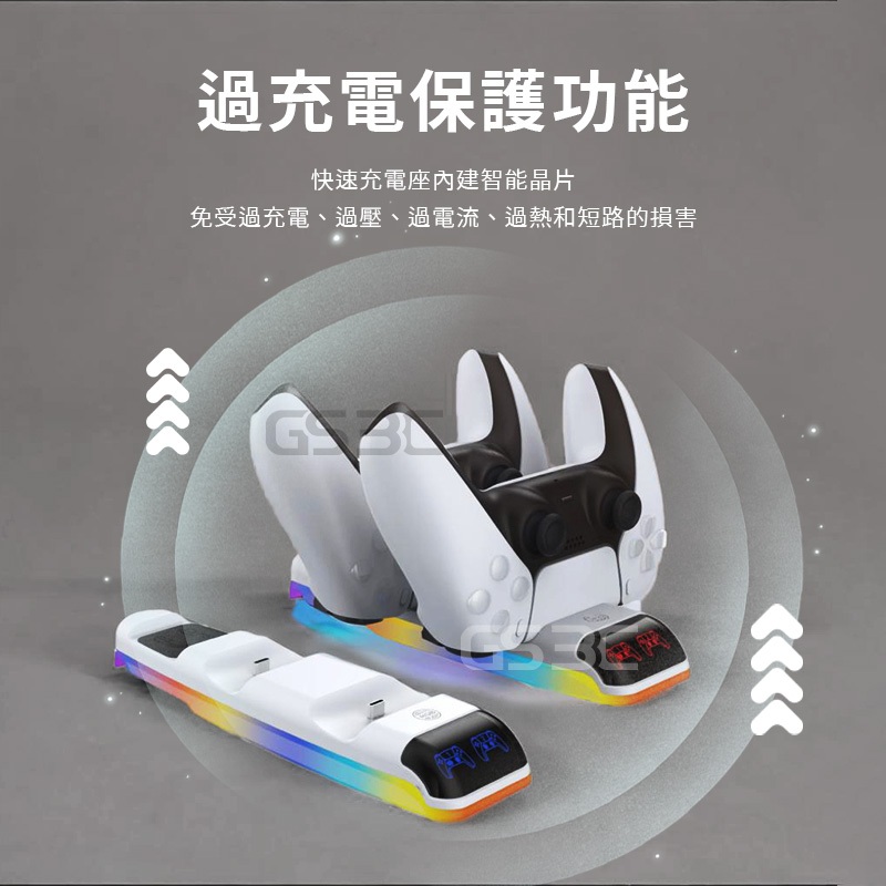 PS5 Slim 專用 手把 搖桿 控制器 充電座 底座 雙座充 主機頂部 主機上 直插式 美觀 不佔空間 彩色氣氛燈白色|黑色GS 3C 手機平板配件選品店