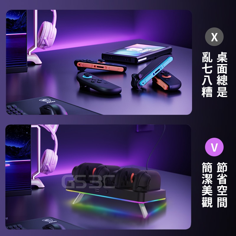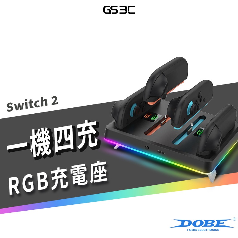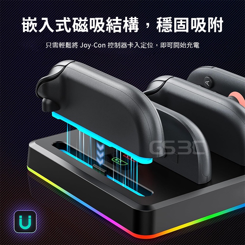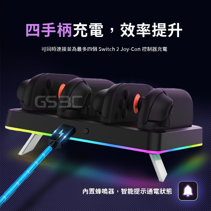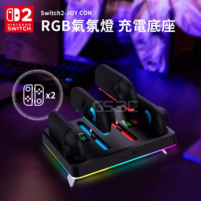 同時四充 任天堂 NS Switch2 Switch 2代 Joy Con RGB 磁吸 座充 充電底座 充電器 充電座黑色GS 3C 手機平板配件選品店