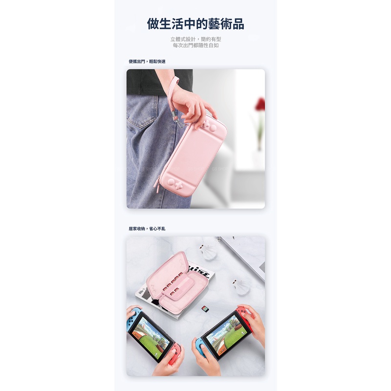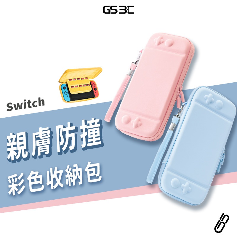 任天堂 NS Switch OLED 彩色收納包 收納盒 防撞包 防摔殼 附腕繩 可收納10張遊戲卡 外出包 方便攜帶黃|櫻花粉GS 3C 手機平板配件選品店