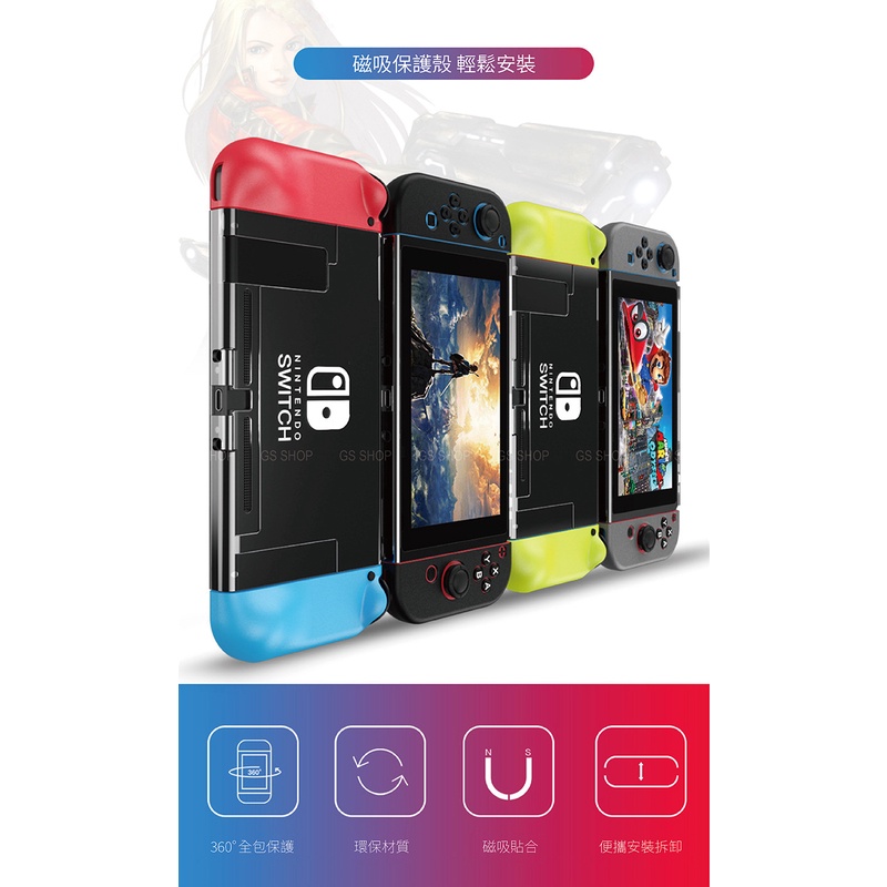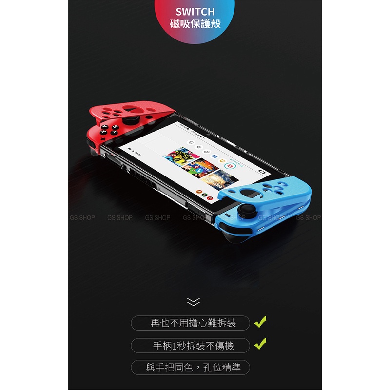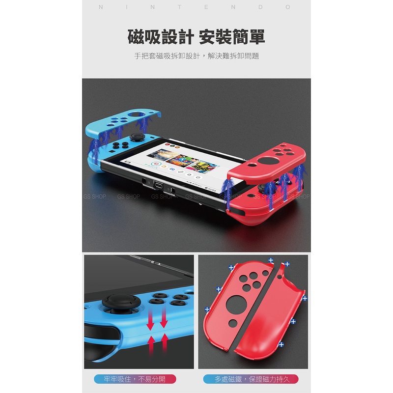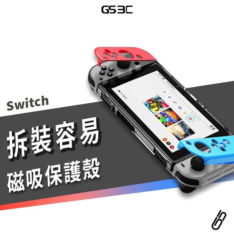Switch OLED 磁吸保護殼 透明背蓋 裸機質感 拆裝容易 防刮防摔 保護套 透明殼 水晶殼 可放原廠底座 配件黑灰,Switch-標準版|黑灰,Switch-OLED |紅藍,Switch-標準版|紅藍,Switch-OLED GS 3C 手機平板配件選品店