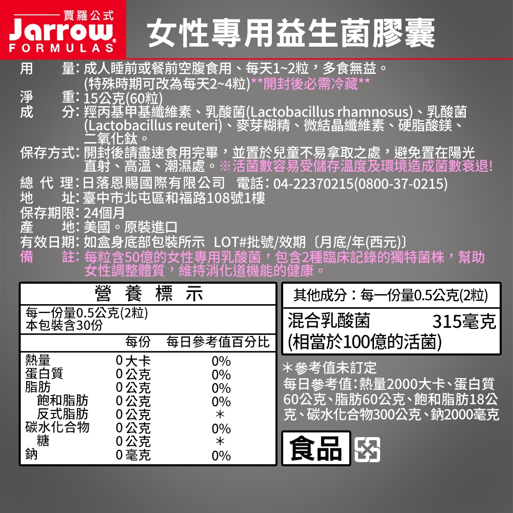 預購Jarrow賈羅公式 [50億]女性專用益生菌膠囊(60粒/瓶)【官方直營】Women’s Fem Dophilus「預購」50億女性益生菌-單瓶(60粒)|「預購」50億女性益生菌-60粒x2瓶組|「預購」50億女性益生菌-60粒x3瓶組|「現貨」RF 300億女性益生菌(33粒|「現貨」RF 500億女性益生菌(33粒|「預購」50億女性益生菌-60粒x5瓶組Well BeingJarrow賈羅公式 x Nature’s Truth綠萃淨 | 官方直營