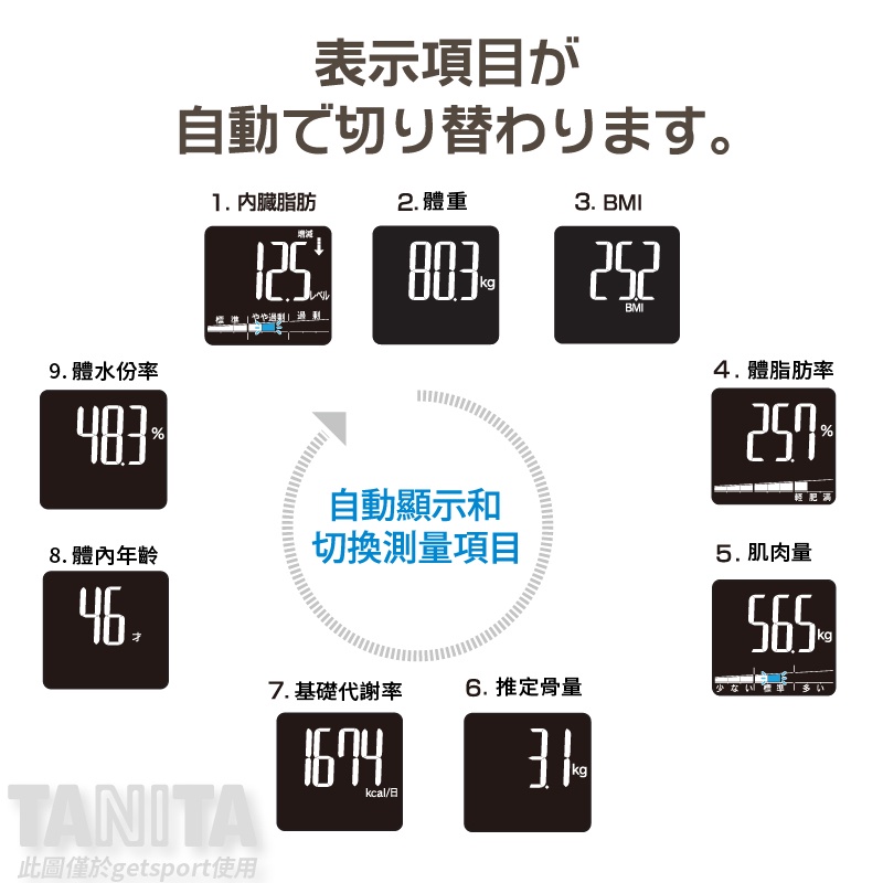 TANITA BC-565 自動顯示功能九合一體組成計(BC565體脂肪計/體脂機/體重計/體脂計/母親節禮物)橘|藍|粉紅|白Scale & Body Fat AnalyzersGetSport運動健身館