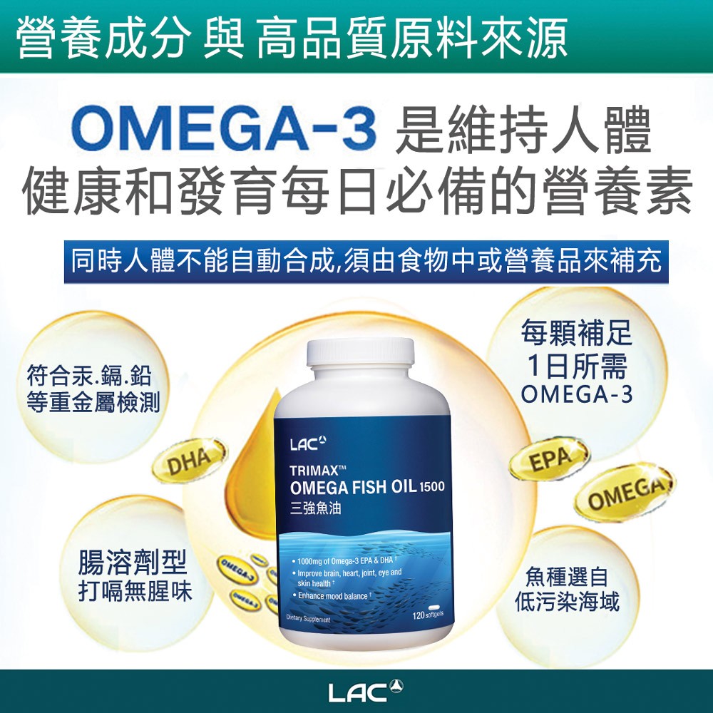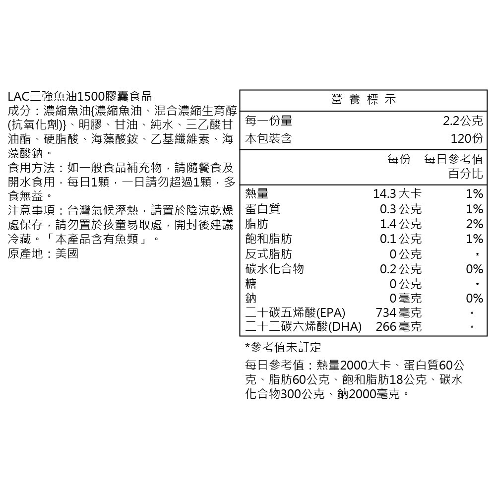 【LAC利維喜】三強魚油1500膠囊120顆(1顆抵3顆/DHA/EPA/85%魚油)【LAC利維喜】三強魚油1500膠囊120顆(1顆抵3顆/DHA/EPA/85%魚油)Well BeingLAC利維喜 官方旗艦店