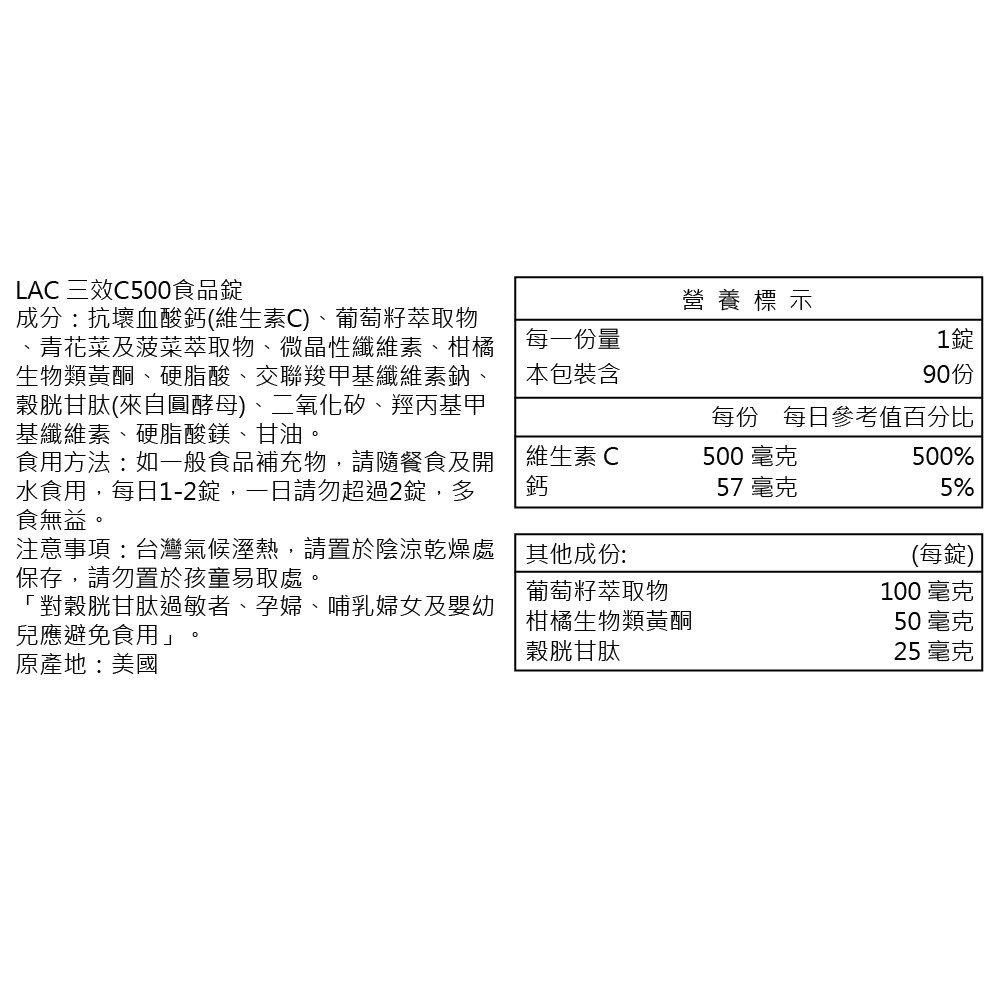 【LAC利維喜】三效C500食品錠90錠(維生素C/穀胱甘肽/葡萄籽/青花菜.菠菜萃取/素食可)【LAC利維喜】三效C500食品錠90錠(維生素C/穀胱甘肽/葡萄籽/青花菜.菠菜萃取/素食可)Well BeingLAC利維喜 官方旗艦店