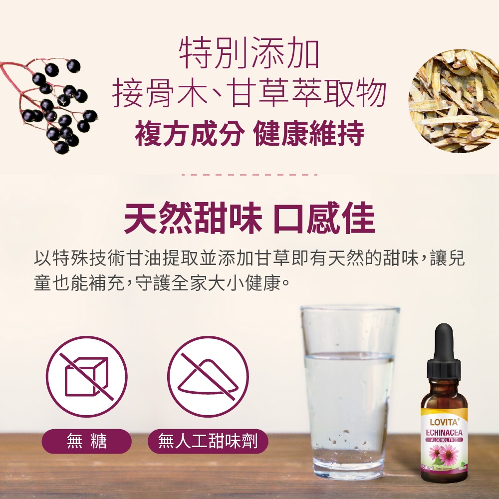 LOVITA愛維他 紫錐花 草本複方滴液30ml (紫錐菊 滴劑 接骨木 甘草 松果菊)紫錐花滴液 效期2026.08|金盾8合1(60顆)效期2026.05Well BeingLOVITA愛維他官方旗艦店