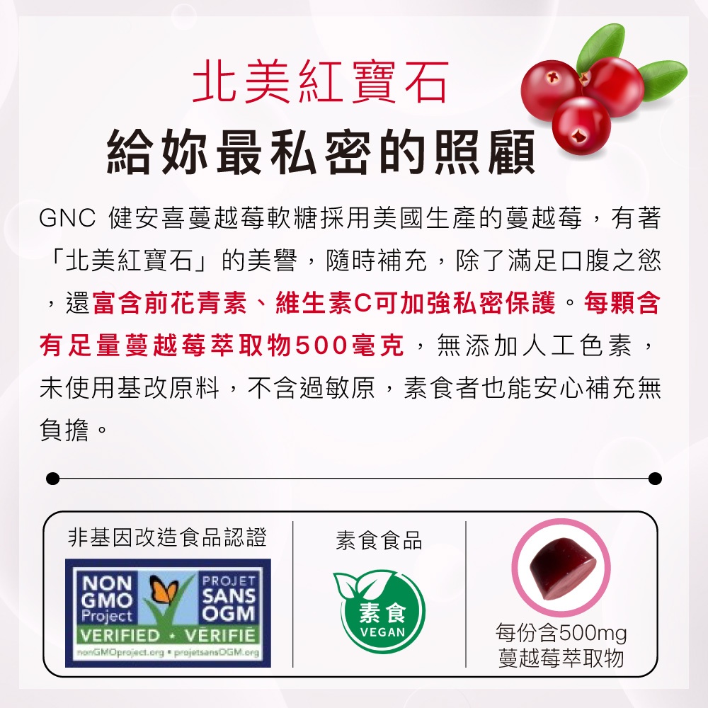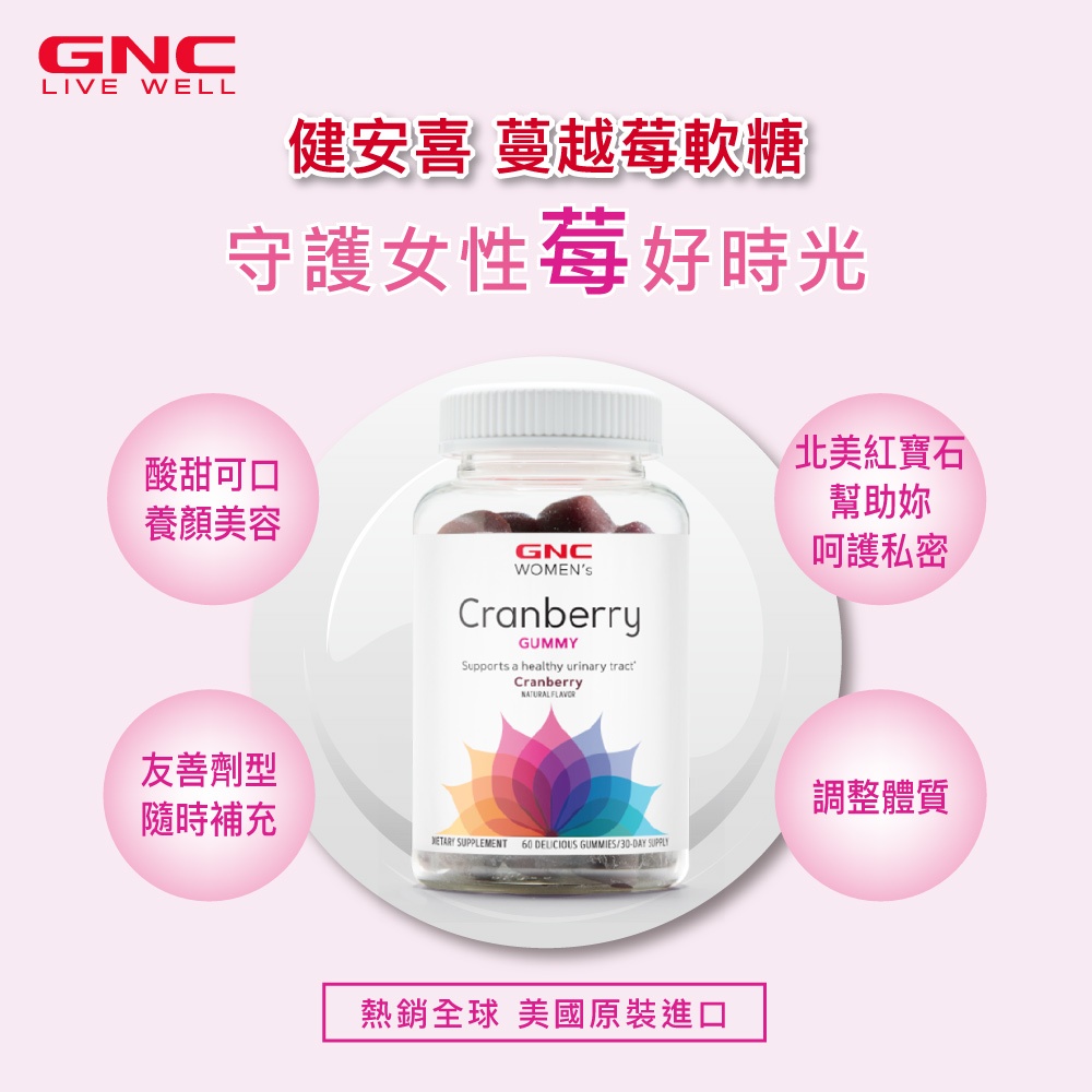GNC 健安喜 蔓越莓軟糖 (商品效期 2026/2/1) 養顏美容維持好氣色 女性私密呵護 私密淨爽GNC 健安喜 蔓越莓軟糖 (商品效期 2026/2/1) 養顏美容維持好氣色 女性私密呵護 私密淨爽Well BeingGNC健安喜 台灣官方旗艦館