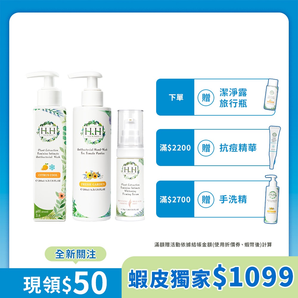 • HH 私密植萃抗菌潔淨露+HH 私密植萃美白緊緻凝露+HH女性私密衣物抗菌手洗精