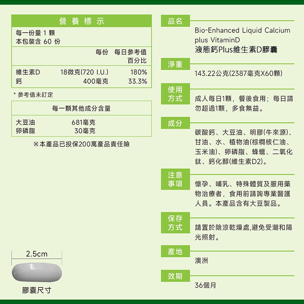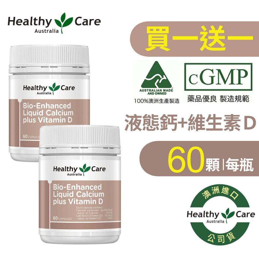 買一送一 Healthy Care澳洲 液態鈣Plus維生素D膠囊(60顆/罐)效期2025/9/301罐共60顆Well BeingHealthy Care品牌旗艦店