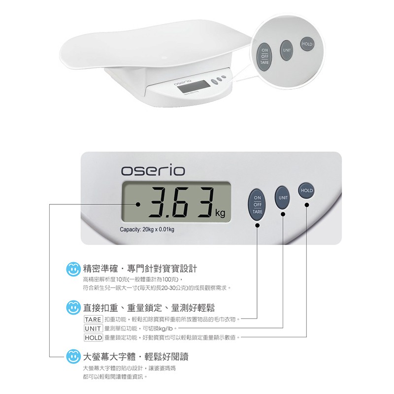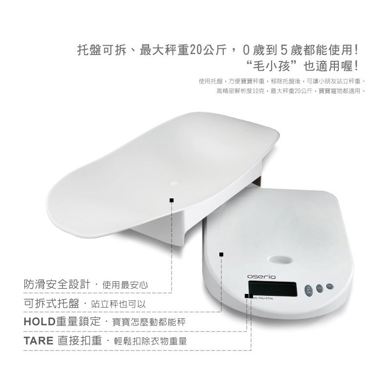 oserio嬰兒數位體重計BBP-703(嬰兒磅秤/毛小孩秤重/寶寶體重機/寵物/婦幼用品)白Scale & Body Fat AnalyzersGetSport運動健身館