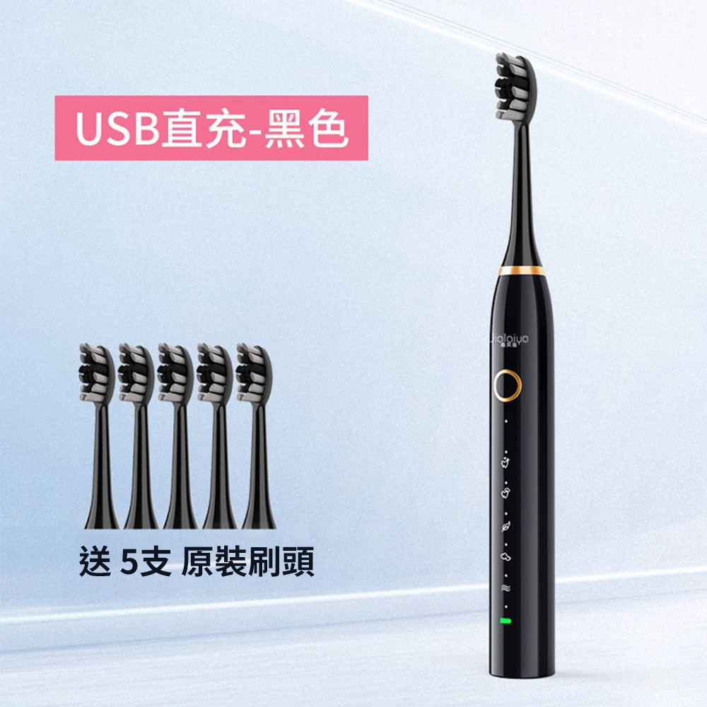 JIALAIYA 嘉萊雅 聲波電動牙刷 牙齒清潔 聲波牙刷 全身防水 USB充電 贈刷頭5支漸變黑Oral CareMatador鬥牛士官方旗艦店