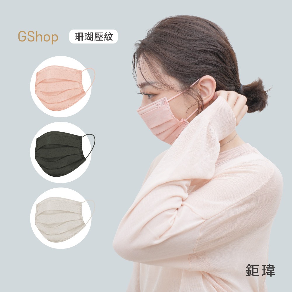 鉅瑋【珊瑚壓紋醫療口罩-蜜桃粉/暮夜綠/燕麥杏】(50片/盒) 粉色口罩 綠色口罩 杏色口罩 鉅瑋口罩 平面口罩蜜桃粉|50片/盒|暮夜綠|50片/盒|燕麥杏|50片/盒Medical Gloves & MasksGShop|鉅瑋官方直營店
