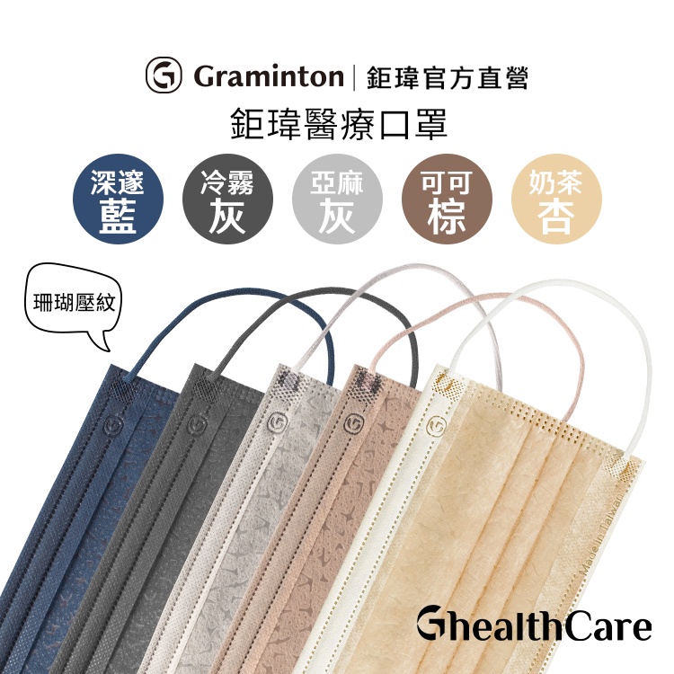鉅瑋【珊瑚壓紋醫療口罩-深邃藍/冷霧灰/亞麻灰/可可棕/奶茶杏】(50片/盒) 醫療口罩 鉅瑋口罩 拋棄式口罩 彩色口罩亞麻灰|50片/盒|可可棕|50片/盒|奶茶杏|50片/盒|深邃藍|50片/盒|冷霧灰|50片/盒Medical Gloves & MasksGShop|鉅瑋官方直營店