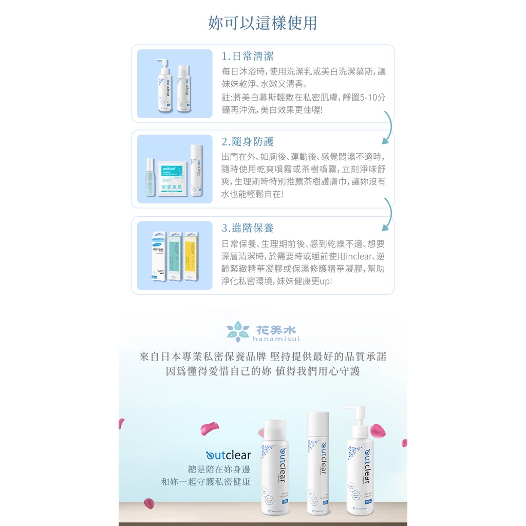 hanamisui 花美水 outclear(奧克麗兒)私密清涼乾爽噴霧50g 官方旗艦店hanamisui 花美水 outclear(奧克麗兒)私密清涼乾爽噴霧50g 官方旗艦店Feminine Carehanamisui花美水官方旗艦店|日本專業私密領導品牌