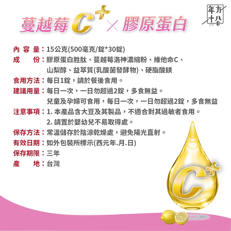 年方十八 蔓越莓Cx膠原蛋白 30錠/包 15g B群 蔓越莓錠 保健食品 膠原蛋白 維生素B群 蔓越莓 JOJOGO蔓越莓C -1包 (30錠/包)|酵母B群-1包 (30顆/包)Beauty SupplementsJOJOGO 生活百貨