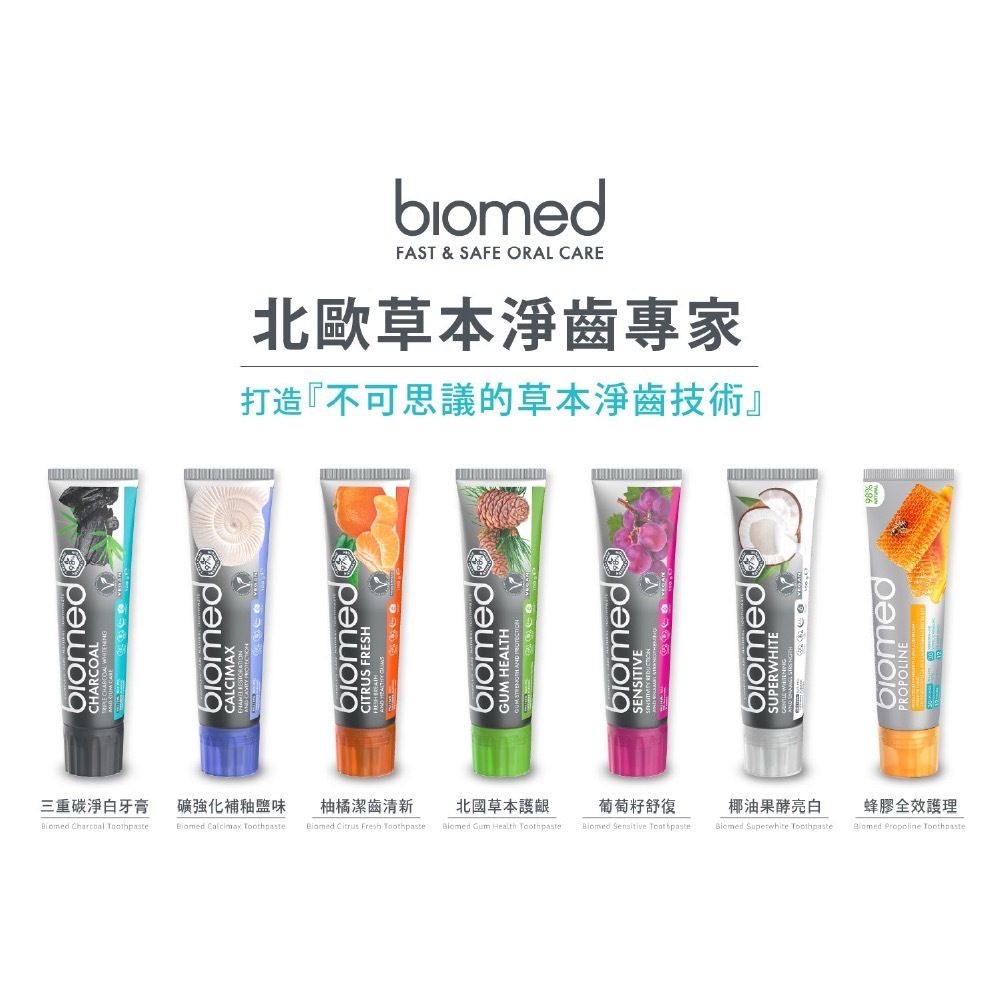 Biomed蓓齒美 三重碳淨白/柚橘潔齒清新/北國草本護齦/椰油果酵亮白/葡萄籽舒復/礦強化補釉鹽味牙膏100g/條三重碳淨白牙膏|柚橘潔齒清新牙膏|北國草本護齦牙膏|椰油果酵亮白牙膏|葡萄籽舒復牙膏|礦強化補釉鹽味牙膏Oral Carejenpin_oil 甄品油舖