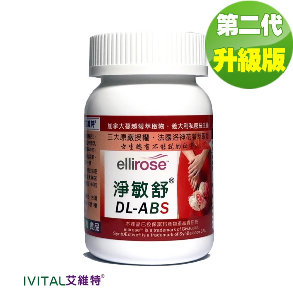 DL-ABS淨敏舒®私密益生菌+蔓越莓+ellirose+D-甘露糖膠囊(60粒)【3大國際原廠授權 2道私密呵護】全素1瓶(60粒)組|買2送2盒B群|買3送1瓶益生菌|買5送1瓶組|日夜雙效加強組Well BeingIVITAL艾維特®官方旗艦店