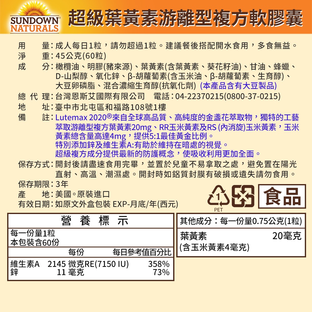 (即期品) Sundown日落恩賜 超級葉黃素游離型複方軟膠囊(60粒/瓶)_效期2026/2/28即期-單瓶(效期2026/2/28)|15粒/包(小袋裝)Well BeingJarrow賈羅公式 x Nature’s Truth綠萃淨 | 官方直營