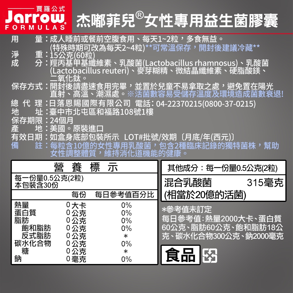 預購 Jarrow賈羅公式 [10億]杰嘟菲兒女性專用益生菌-60粒【官方直營】Women’s Fem Dophilus預購 Jarrow賈羅公式 [10億]杰嘟菲兒女性專用益生菌-60粒【官方直營】Women’s Fem DophilusWell BeingJarrow賈羅公式 x Nature’s Truth綠萃淨 | 官方直營