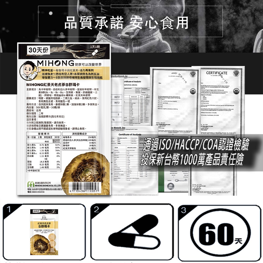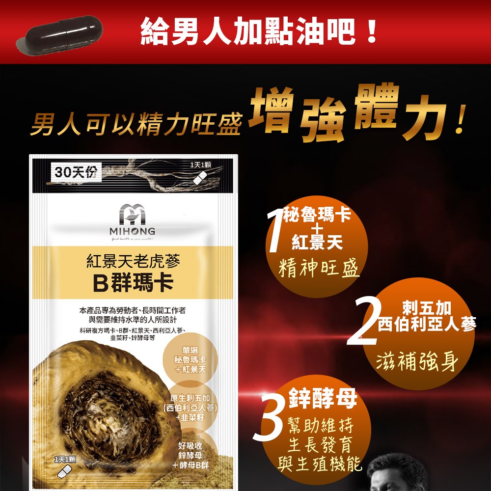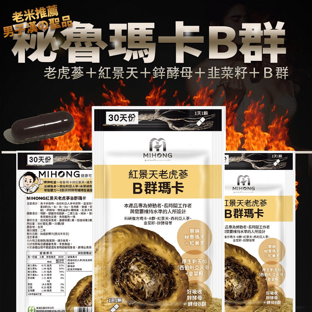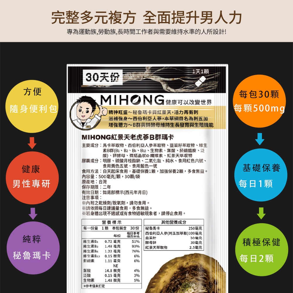 MIHONG米鴻生醫 紅景天 老虎蔘 B群 瑪卡 (30顆/包)囤貨組B群瑪卡加鋅 4包|B群瑪卡加鋅 8包|B群瑪卡加鋅 15包Well BeingMIHONG® 米鴻生醫