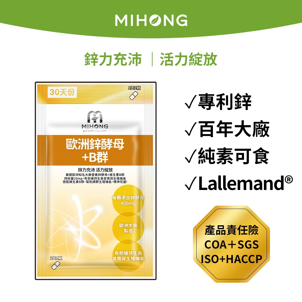 MIHONG® 歐洲鋅酵母+B群 (30顆/袋)MIHONG® 歐洲鋅酵母+B群 (30顆/袋)Well BeingMIHONG® 米鴻生醫