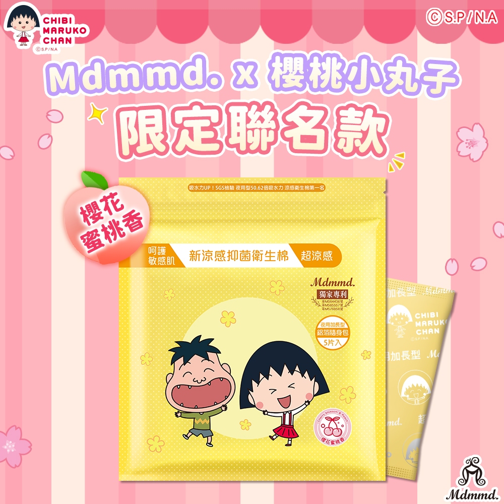 Mdmmd. x 櫻桃小丸子聯名限量衛生棉-超涼感櫻花蜜桃香夜用加長型 41cm/5片【官方直營】超涼感夜用加長型【超取上限30包】Feminine CareMdmmd.明洞國際-官方旗艦店