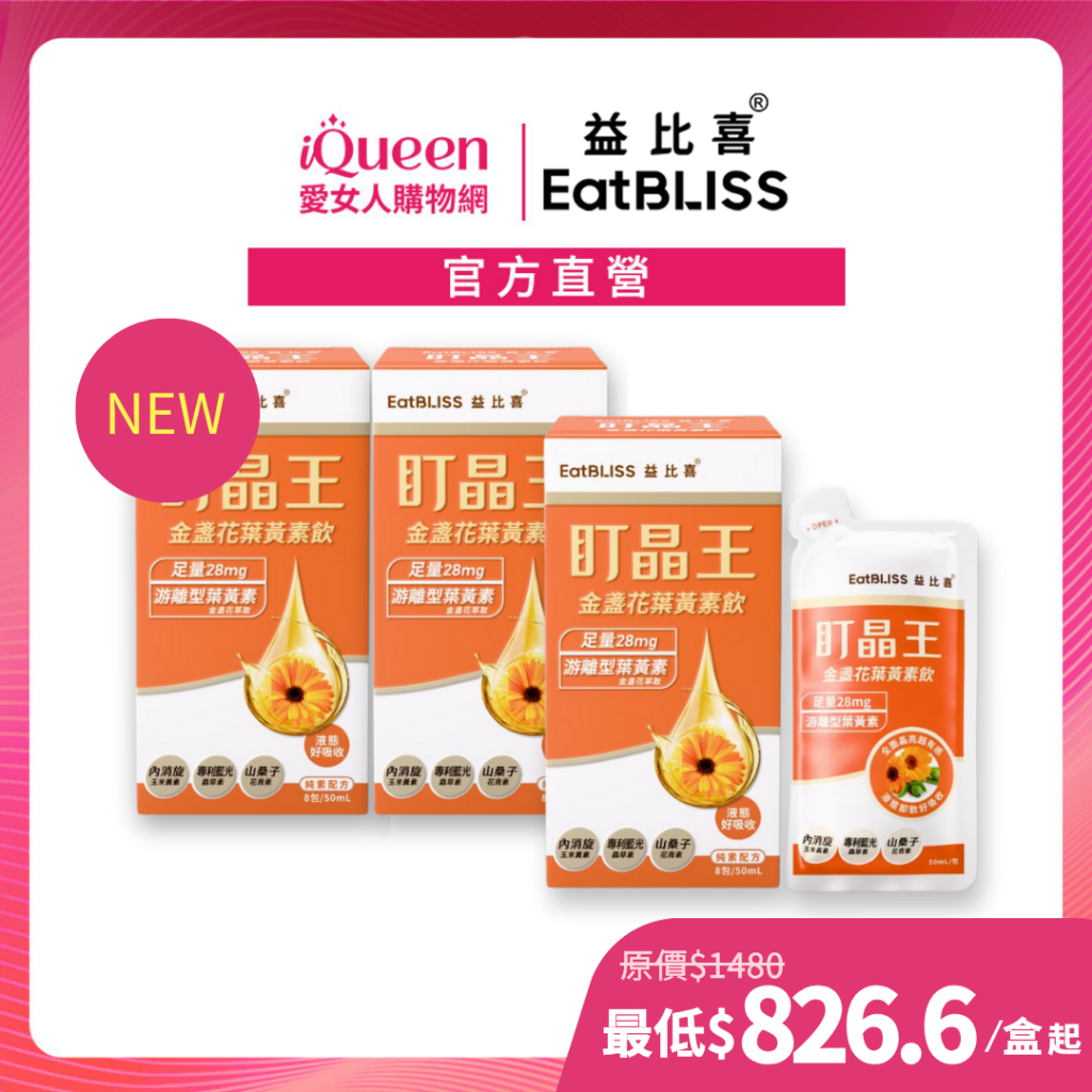 【EatBLISS 益比喜】【NEW】盯晶王金盞花葉黃素飲(8入/盒) | 內消旋玉米黃素 北蟲草 金盞花 B12x1盒|x2盒|x3盒Well BeingiQueen愛女人購物網 官方旗艦店