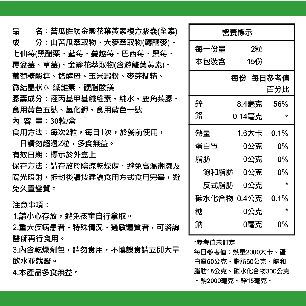 苦瓜胜肽金盞花葉黃素複方膠囊 全素 台灣製造 保健食品 調節生理機能 幫助調整體質