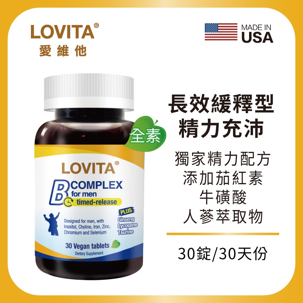 LOVITA愛維他 男性新型緩釋美妍活力B群(30錠)(素食 綜合B群 鋅 牛磺酸 茄紅素 人參)男性B群(30錠)效期2028.03|男性B群(30錠)+男性B群(7錠)|女性B群(30錠)+男性B群(7錠)|男性B群(30錠)+女性B群(7錠)|女性B群(30錠)效期2028.05|女性B群(30錠)+女性B群(7錠)|男性B群(7錠)效期2027.03Well BeingLOVITA愛維他官方旗艦店