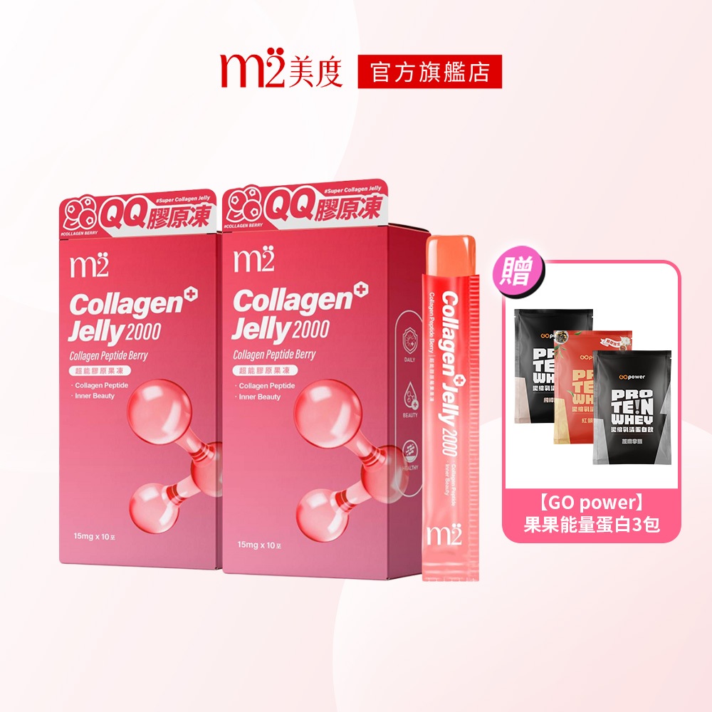 【m2 美度】超能膠原莓果果凍 買1送1組(10入/任選2盒)贈果果能量乳清蛋白3包(芝麻拿鐵+紅韻歐蕾+純粹那提)莓果口味2入++果果能量乳清蛋白3包Beauty Supplementsm2美度官方旗艦店
