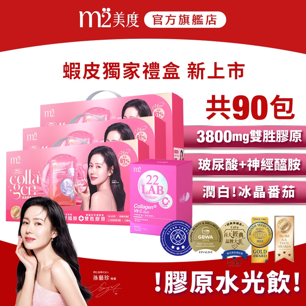 【m2 美度】超能膠原水光飲禮盒(30入/盒)x3 贈 超能膠原C粉(30入/盒) 蝦皮獨家販售水光禮盒x3盒+膠原C粉30入x1盒Beauty Supplementsm2美度官方旗艦店