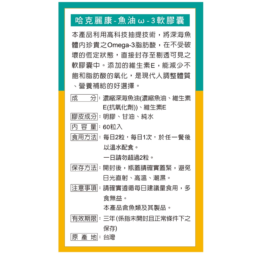 【永信HAC】魚油ω-3軟膠囊(60粒/瓶)-粒小易食無魚腥味60粒x1瓶|60粒x2瓶|60粒x4瓶Well BeingMIPA 生活百貨