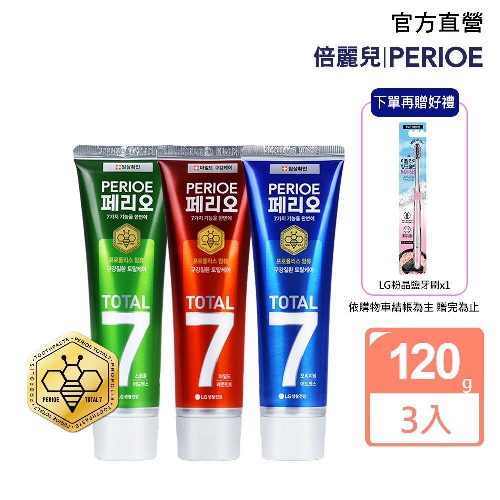 PERIOE 倍麗兒7效蜂膠牙膏120gX3入組(經典藍/青檸紅/沁涼綠)經典藍3入(經典薄荷)|沁涼綠3入(濃郁薄荷)|青檸紅3入(柑橘薄荷)|各1入(柑橘薄荷+濃郁薄荷+經典薄荷)Oral CareLG生活健康 官方旗艦店