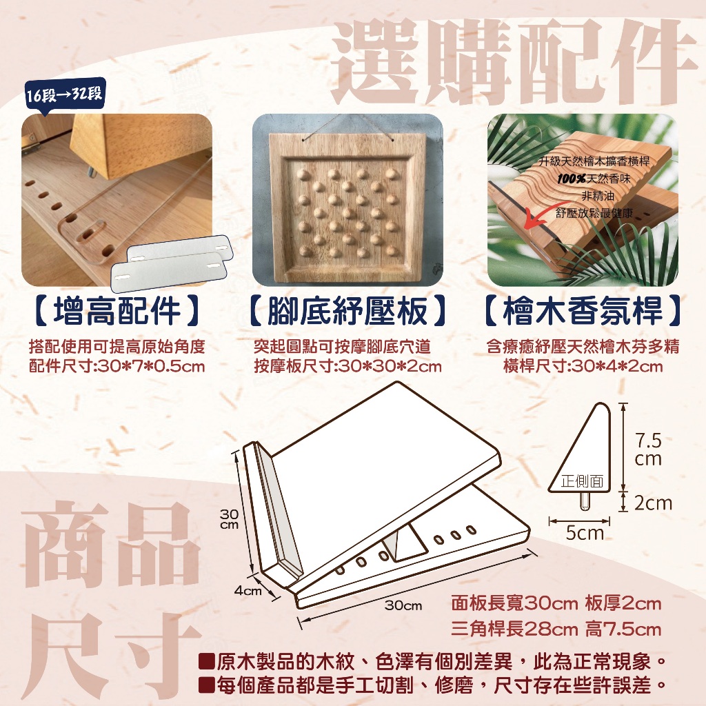 【多件專用賣場-宅配限定】台製實木拉筋板 堅固耐用更安心 腳底按摩 拉筋板 拉伸板 按摩 指壓板 健康步道第一代拉筋板(十段角度)-胡桃色|二代加強款(32段)-平面|二代加強款(32段)-波浪|二代加強款(32段)-大圓點|二代加強款(16段)-平面|二代加強款(16段)-平面升級檜木香氛桿|二代加強款(16段)-平面+舒筋按摩棒|二代加強款(16段)-平面+滾輪棒(紅)|二代加強款(16段)-平面+台灣檜木精油|二代加強款(16段)-平面+腳底紓壓板|二代加強款(16段)-波浪|二代加強款(16段)-波浪升級檜木香氛桿|二代加強款(16段)-波浪+舒筋按摩棒|二代加強款(16段)-波浪+滾輪棒(紅)|二代加強款(16段)-波浪+台灣檜木精油|二代加強款(16段)-波浪+腳底紓壓板|二代加強款(16段)-大圓點|二代加強款(16段)-大圓點升級檜木香桿|二代加強款(16段)-大圓點+舒筋按摩棒|二代加強款(16段)-大圓點+滾輪棒(紅|二代加強款(16段)-大圓點+台灣檜木精|第一代拉筋板(十段角度)-原木色Massage & Therapy DevicesKIJO木城工坊